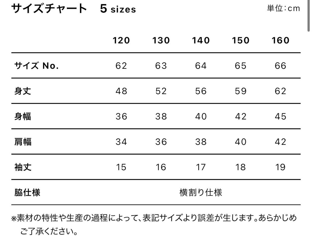 ⇨取扱サイズ:140/150/160/S/M