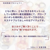 ともに笑い、ともに生きるを、モットーにしている障がい者支援施設にてグローブのハギレを再利用したレザーで作られたサステナブルでおしゃれなアイテムです。