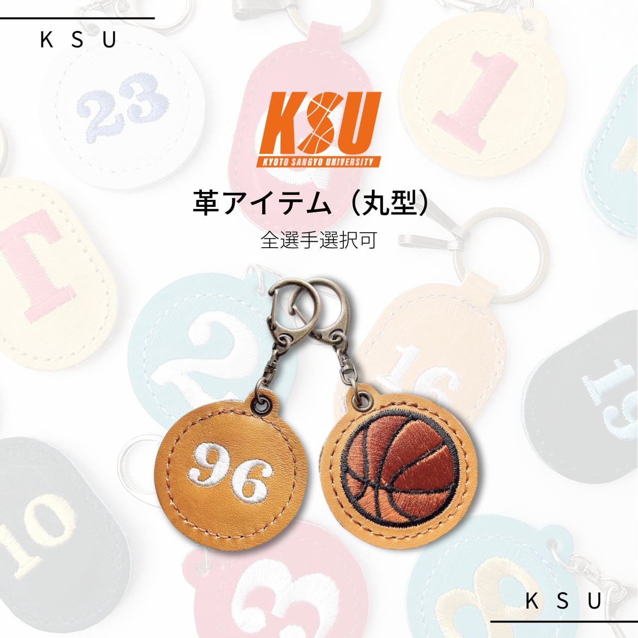 【丸型】【背番号×バスケットボール】【革アイテム】京都産業大学バスケ部